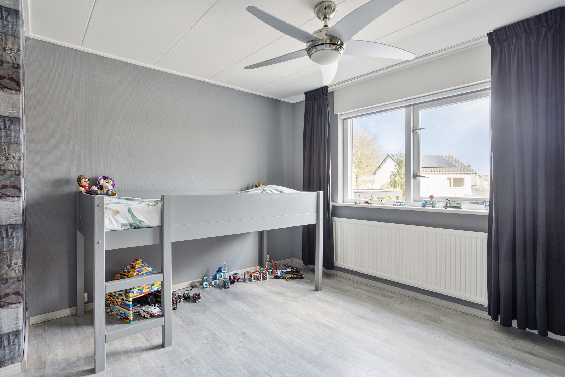 Op de eerste verdieping vind je drie slaapkamers, stuk voor stuk goed van formaat en praktisch in te delen. De hoofdslaapkamer beschikt over een vaste schuifkastenwand, wat zorgt voor veel bergruimte zonder in te leveren op ruimtegevoel. De badkamer is compleet en verzorgd uitgevoerd met een douchecabine, wastafelmeubel en wandcloset. Dankzij het raam profiteer je van natuurlijke ventilatie en daglicht, wat de ruimte prettig licht maakt.