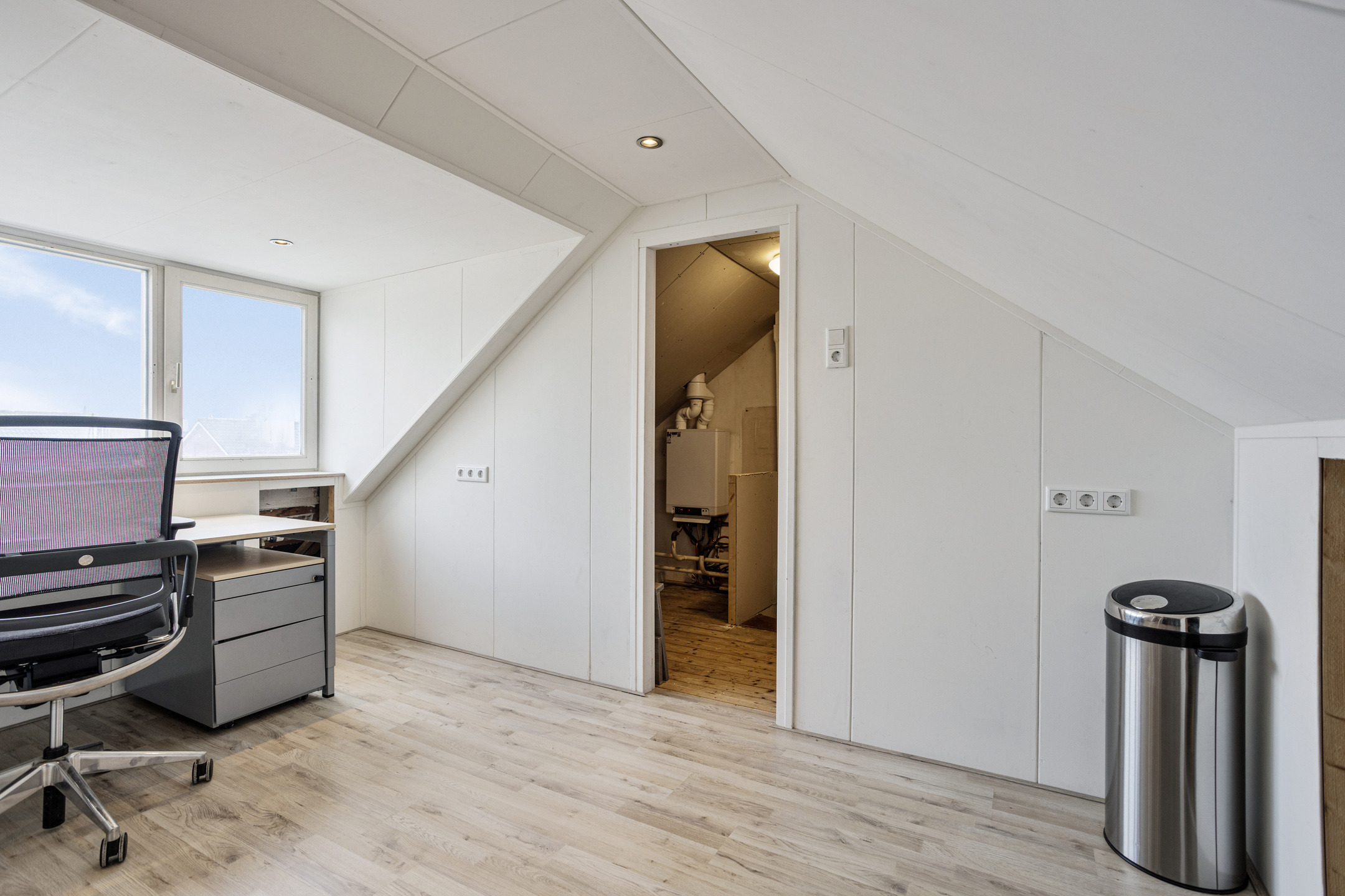 Via een vaste trap bereik je de tweede verdieping. Hier bevindt zich de vierde slaapkamer, die dankzij de dakkapel ruim en licht aanvoelt. Ideaal als werkplek, hobbyruimte of tienerkamer. Achter de knieschotten is extra bergruimte aanwezig en ook de cv-installatie is hier gesitueerd. Een praktische verdieping die de woning net dat beetje extra geeft.