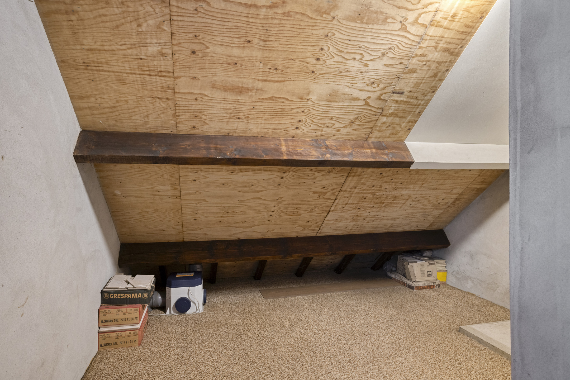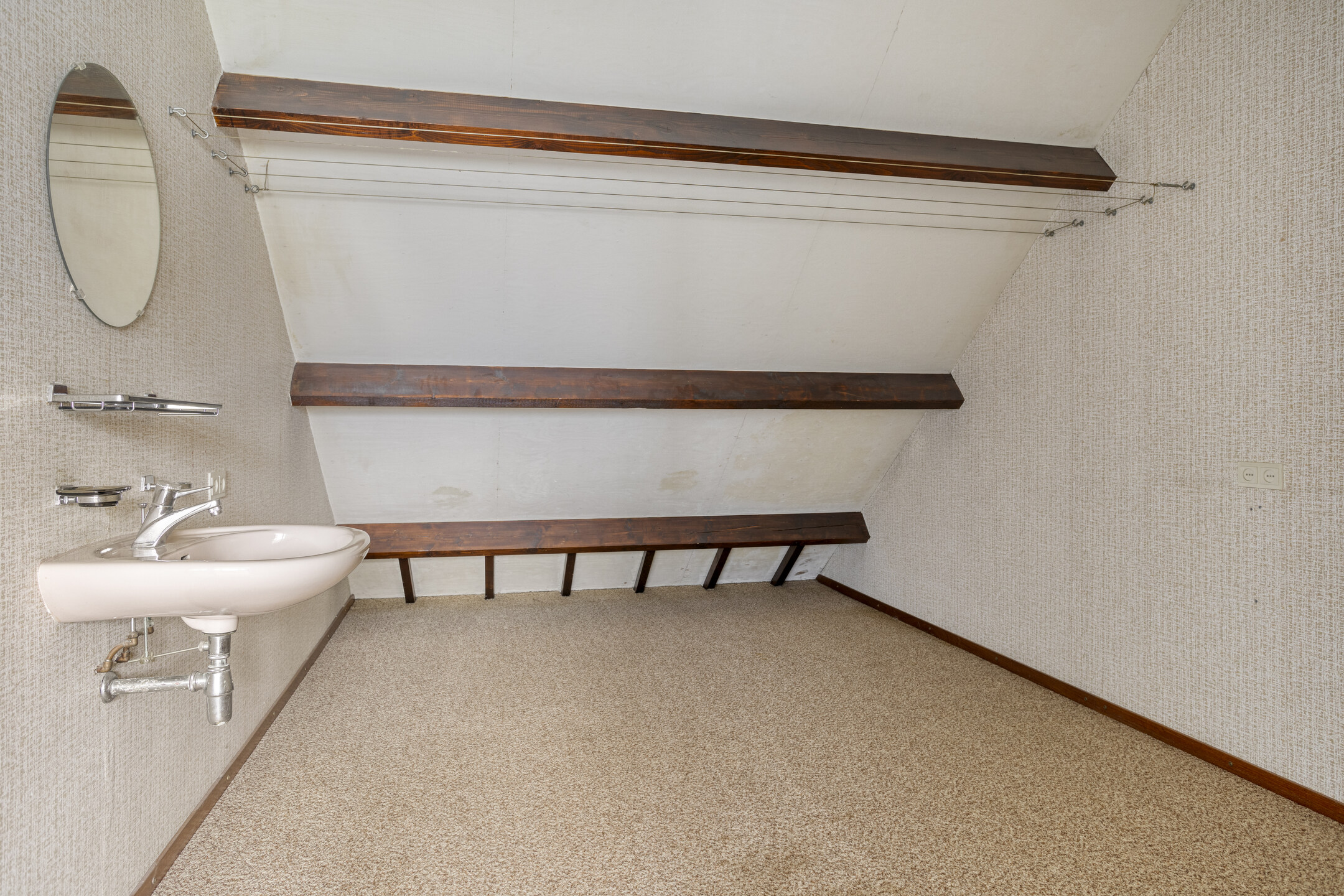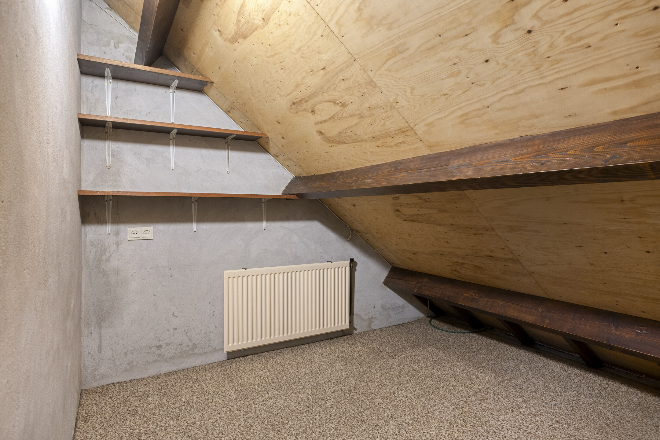 Een vaste trap brengt u naar de tweede verdieping, waar u nog twee slaapkamers aantreft én een royale berging. Deze verdieping vormt een volwaardige aanvulling op de leefruimte van de woning. Één slaapkamer ligt onder de kap en heeft daardoor sfeervolle schuine wanden, maar biedt tegelijkertijd voldoende stahoogte en praktische indelingsmogelijkheden. De andere slaapkamer is voorzien van een dakkapel. Of u nu een logeerkamer, extra werkplek of tienerkamer wenst: hier kan het allemaal. Eén van de kamers beschikt bovendien over een eigen wastafel. De berging op zolder biedt u een zee aan opbergruimte, ideaal voor koffers, seizoensspullen of andere spullen die u uit het zicht wilt bewaren. Een praktische toevoeging die het wooncomfort compleet maakt.